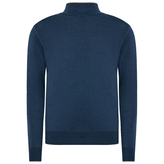 La Martina Blue Wool Men Sweater with Half Zip Closure