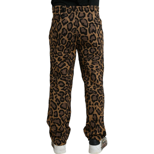 Dolce & Gabbana Brown Leopard Print Polyester Jogger Pants