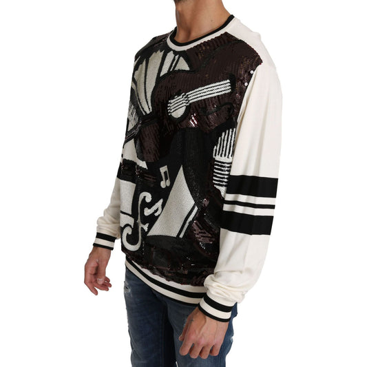 Dolce & Gabbana White Jazz Sequined Guitar Pullover Top Sweater