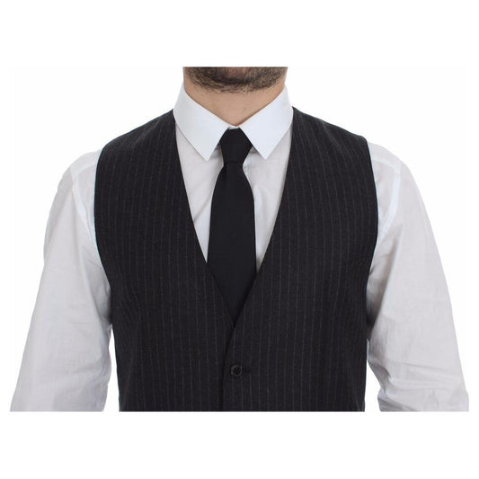 Dolce & Gabbana Gray Striped Wool Logo Vest Gilet Vests