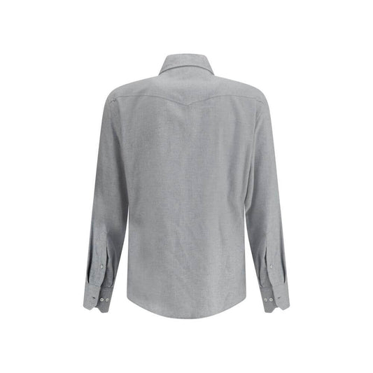 Brunello Cucinelli Gray Cotton Pattern Shirt