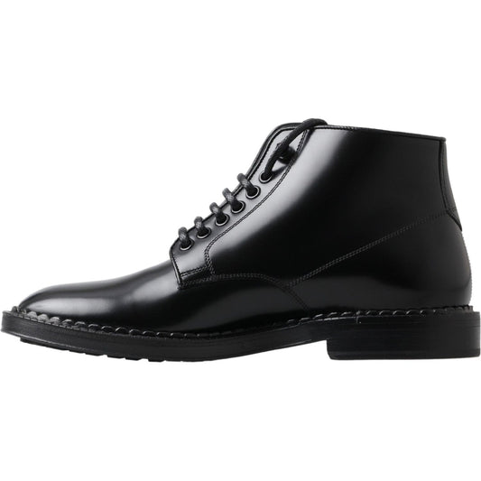 Dolce & Gabbana Black Leather Men Short Boots Lace Up Shoes