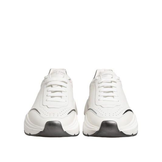 Dolce & Gabbana White Silver DAYMASTER Leather Sneakers Shoes