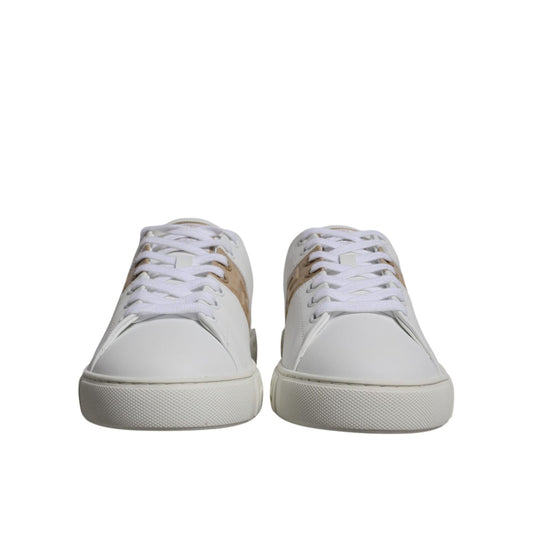 Dolce & Gabbana White Brown Leather Low Top Men Sneakers Shoes