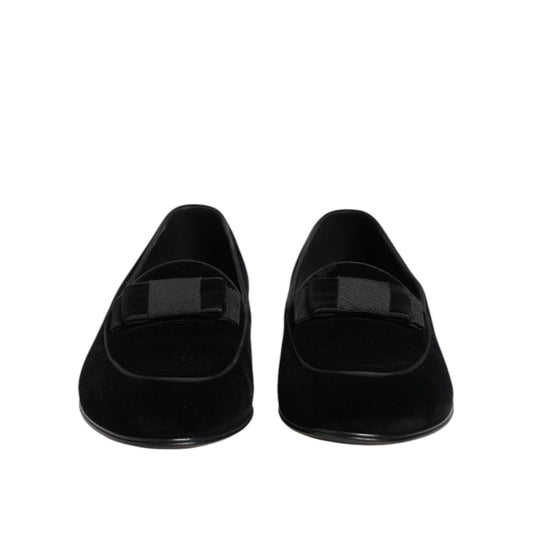 Dolce & Gabbana Black Velvet Loafers Formal Men Dress Shoes