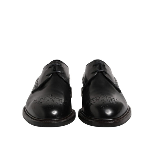 Dolce & Gabbana Black Leather Derby Wingtip Formal Shoes