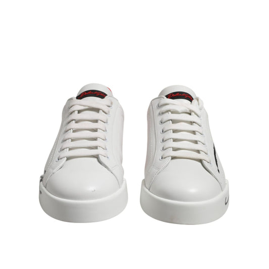 Dolce & Gabbana White Red Logo Low Top Leather Sneakers Shoes