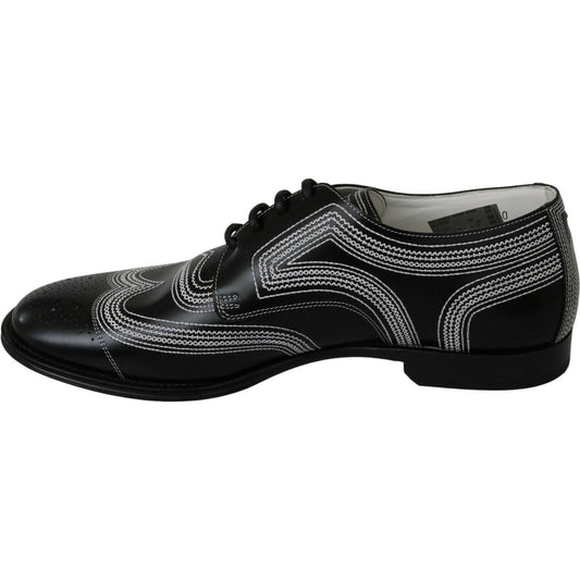 Dolce & Gabbana Black Leather Derby Formal White Lace Shoes