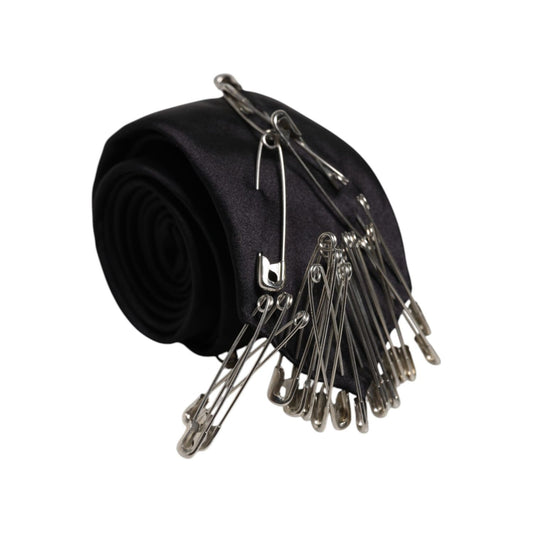 Dolce & Gabbana Black Safety Pins Silk Adjustable Necktie Accessory Tie