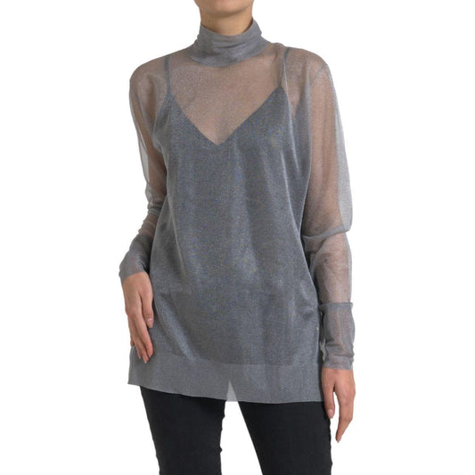 Dolce & Gabbana Gray Mesh Turtleneck Long Sleeve Blouse Top