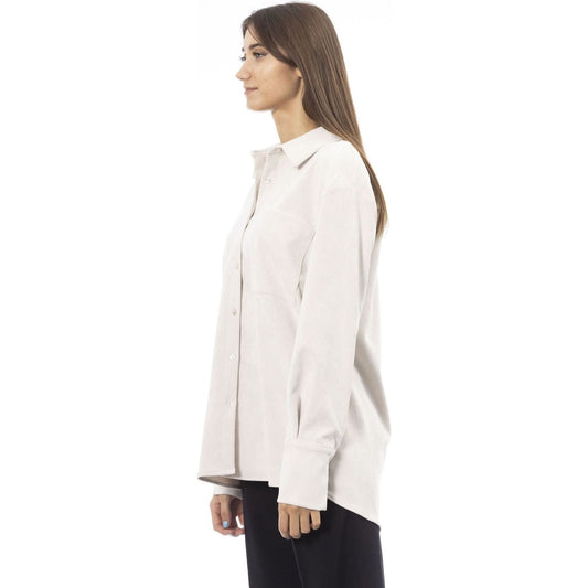 Dolce & Gabbana White Cotton Ascot Collar Long Sleeves Top