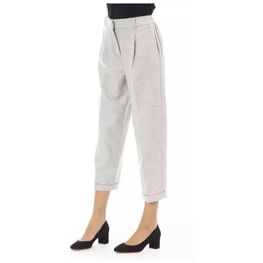 Alpha Studio Brown Wool Women Sweater with Side Slits