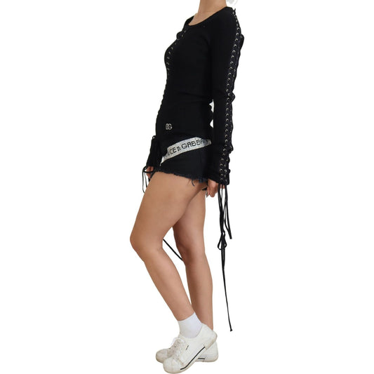 Dolce & Gabbana Black Wool Knitted Tie Up Slim Fit Sweater