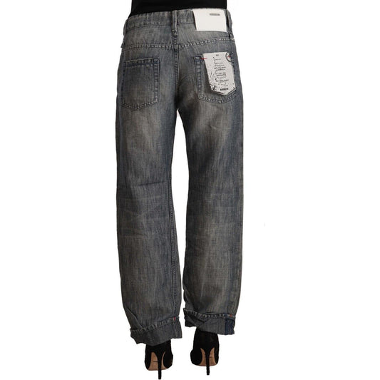 Acht Blue Washed Cotton Low Waist Slim Fit Denim Jeans