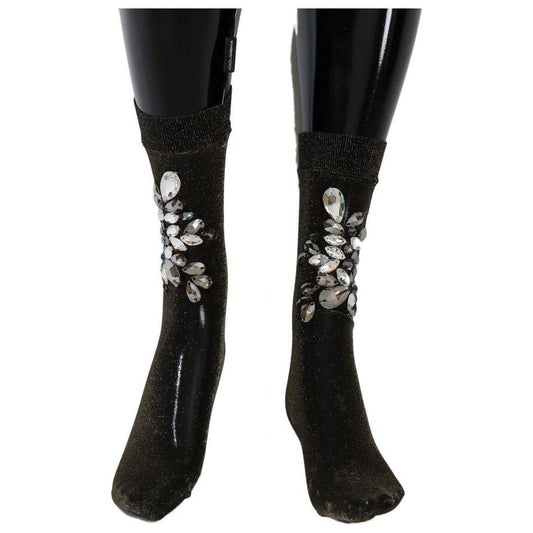 Dolce & Gabbana Black Stretch Floral Clear Crystal Socks