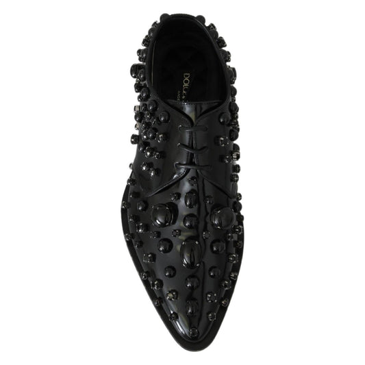 Dolce & Gabbana Black Leather Crystals Dress Broque Shoes