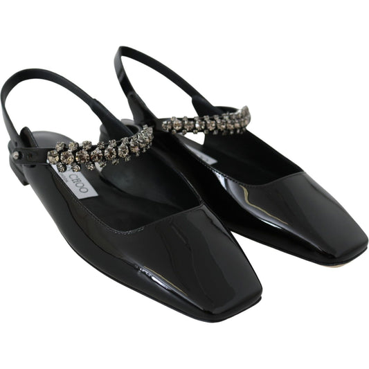 Jimmy Choo Elegant Black Patent Flats with Crystal Accent