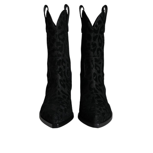 Dolce & Gabbana Black Gray Leopard Cowboy Boots Shoes