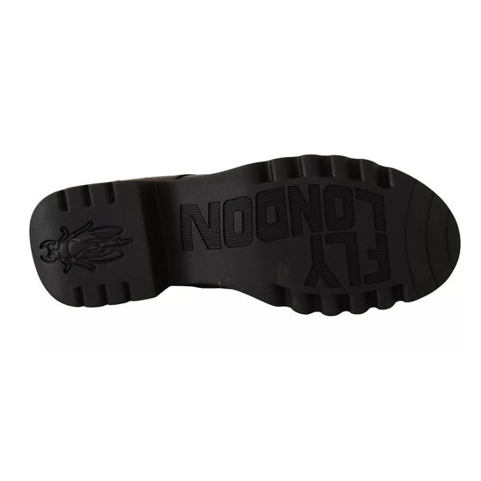 FLY LONDON Black Leather Low Top Lace Up Women Oxford Shoes