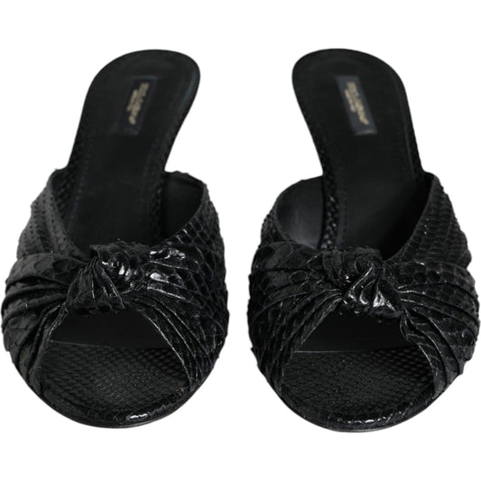 Dolce & Gabbana Black Leather Heels Slides Sandals Shoes