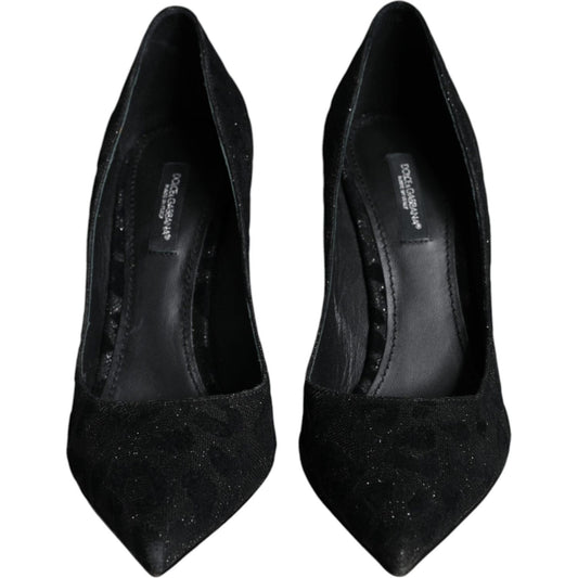 Dolce & Gabbana Black Leopard Lurex High Heels Pumps Shoes