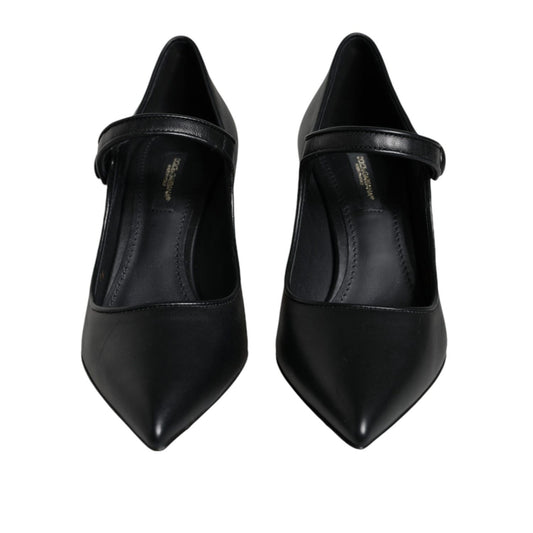 Dolce & Gabbana Black Leather Logo Heels Mary Janes Pumps Shoes