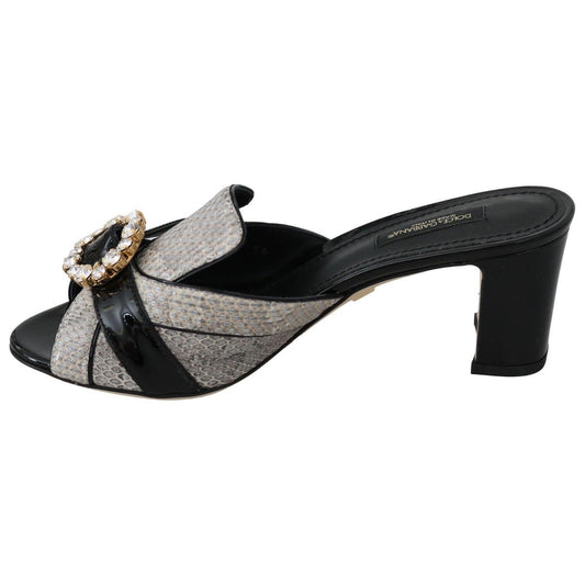 Dolce & Gabbana Black Gray Exotic Leather Crystals Sandals Shoes