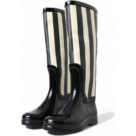 Dolce & Gabbana Black Rubber Knee High Flat Boots Shoes