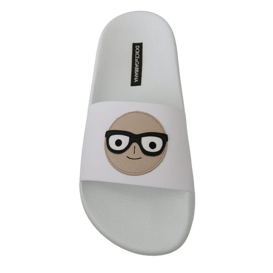 Dolce & Gabbana White Leather #dgfamily Slides Shoes Sandals