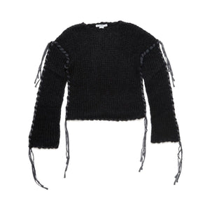 black knitted construction drop shoulder round neck long sleeves straight hem We've partnered with Good On You — an independent agency that rates how brands perform in relation to their impact on the planet, people and animals, with a multi-criteria rating simplified to a five points scale. In order to be awarded our conscious label, larger brands need to score a minimum of four out of five ('Good'), while smaller brands must score at least three out of five ('It's A Start'). This item comes from a brand rated three out of five ('It's A Start') by Good on You at the time it was added on FARFETCH. Please note, this is a brand-level rating and does not guarantee that this product is made with conscious materials. Learn more about what makes a product Conscious on our Conscious Criteria page Wool blend crewneck sweater Size and Fit - This piece fits true to size. We recommend you get your regular size. Model is 1,75m / 5ft 8in wearing size S