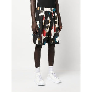 logo-print straight-leg shorts from Alexander McQueen featuring two side inset pockets, two rear welt pockets, black/multicolour, cotton, all-over logo print and elasticated waist. Printed shorts Size and Fit - This piece fits true to size. We recommend you get your regular size. Model is 1,84m / 6ft 1in wearing size 48 (IT)