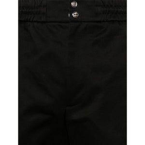 black cotton twill weave logo-engraved silver-tone hardware tapered leg mid-rise hook and zip fly fastening elasticated waistband internal drawstring fastening waist two side slit pockets two rear welt pockets elasticated ankles ankle zips Organic cotton cargo trousers Size and Fit - This piece fits true to size. We recommend you get your regular size. Model is 1,84m / 6ft 1in wearing size 48 (IT)