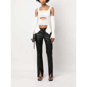 cut-out detail ribbed knit top from ANDREADAMO featuring ivory white, ribbed knit, distressed effect, cut-out detailing, wide shoulder straps, crop sleeves and halterneck tie fastening. Knit ribbed top Size and Fit - This piece fits true to size. We recommend you get your regular size. Model is 1,75m / 5ft 8in wearing size S