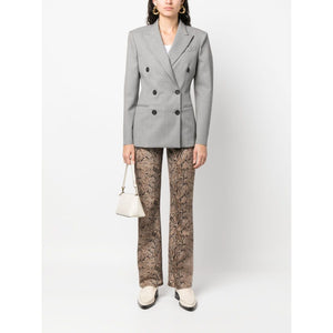 notched lapels double-breasted blazer from ARMARIUM featuring light grey, virgin wool, notched lapels, double-breasted button fastening, chest welt pocket, two front jetted pockets, long sleeves, buttoned cuffs and straight hem. Double-breasted wool jacket Size and Fit - This piece fits true to size. We recommend you get your regular size. Model is 1,75m / 5ft 8in wearing size 40 (IT)