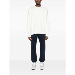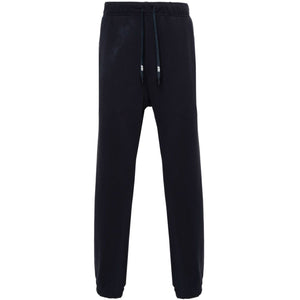 navy blue cotton jersey texture tapered leg elasticated drawstring waistband two side inset pockets logo patch to the front rear patch pocket elasticated cuffs Logo cotton sweatpants Size and Fit - This piece fits true to size. We recommend you get your regular size. Model is 1,84m / 6ft 1in wearing size M