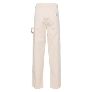 light beige cotton twill weave logo patch to the rear belt loops carpenter strap button fly fastening straight leg classic five pockets multiple patch pockets Cotton trousers Size and Fit - This piece fits true to size. We recommend you get your regular size. Model is 1,84m / 6ft 1in wearing size M