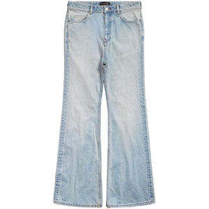 light blue cotton high-waisted belt loops classic five pockets concealed fly and button fastening logo patch to the rear wide leg We've partnered with Good On You — an independent agency that rates how brands perform in relation to their impact on the planet, people and animals, with a multi-criteria rating simplified to a five points scale. In order to be awarded our conscious label, larger brands need to score a minimum of four out of five ('Good'), while smaller brands must score at least three out of five ('It's a start'). This item comes from a brand rated four out of five ('Good') by Good on You at the time it was added on FARFETCH. Please note, this is a brand-level rating and does not guarantee that this product is made with conscious materials. Learn more about what makes a product Conscious on our Conscious Criteria page Flared denim jeans Size and Fit - This piece fits true to size. We recommend you get your regular size. Model is 1,75m / 5ft 8in wearing size 27 (WAIST CM)