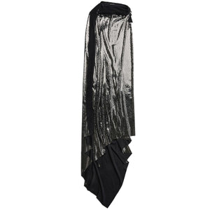 Minimal metallic-effect gown from BALENCIAGA featuring black, silver-tone, metallic effect, draped back, boat neck, safety pin detail, sleeveless, raw edge, asymmetric hem and floor-length. We've partnered with Good On You — an independent agency that rates how brands perform in relation to their impact on the planet, people and animals, with a multi-criteria rating simplified to a five points scale. In order to be awarded our conscious label, larger brands need to score a minimum of four out of five ('Good'), while smaller brands must score at least three out of five ('It's a start'). This item comes from a brand rated four out of five ('Good') by Good on You. Please note, this is a brand-level rating and does not guarantee that this product is made with conscious materials.. Learn more about what makes a product Conscious on our Conscious Criteria page. Metallic effect midi dress