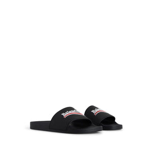 black embossed logo to the front slip-on style moulded footbed single toe strap round open toe flat sole We've partnered with Good On You — an independent agency that rates how brands perform in relation to their impact on the planet, people and animals, with a multi-criteria rating simplified to a five points scale. In order to be awarded our conscious label, larger brands need to score a minimum of four out of five ('Good'), while smaller brands must score at least three out of five ('It's a start'). This item comes from a brand rated four out of five ('Good') by Good on You at the time it was added on FARFETCH. Please note, this is a brand-level rating and does not guarantee that this product is made with conscious materials. Learn more about what makes a product Conscious on our Conscious Criteria page. Political Campaign pool slides Size and Fit - Heel 1,2 in / 3 cm; Platform 0,8 in / 2 cm