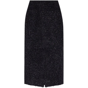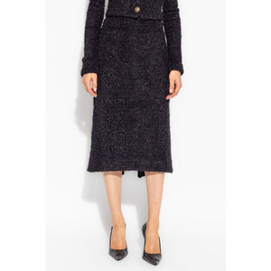 black cotton blend tweed rear zip fastening rear slit straight hem mid-length Tweed midi skirt