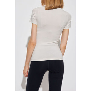 light grey cotton blend jersey texture crew neck logo print to the front short sleeves straight hem We've partnered Logo cotton t-shirt Size and Fit - This piece fits true to size. We recommend you get your regular size. Model is 1,75m / 5ft 8in wearing size S