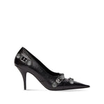 Nero, pelle di agnello, dettaglio con fibbia decorativa, design a punta, design senza aperture, soletta con logo e tacco alto. Le Cagole leather pumps Size and Fit - Heel 9 cm