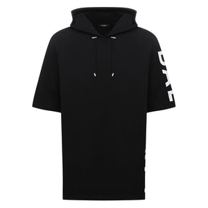 Discover the epitome of urban chic with the Balmain black cotton sweatshirt, tailored for the fashion-forward. This half-sleeve wonder boasts the iconic logo print that cascades with elegance down the side, offering a signature touch to your wardrobe. Featuring a practical drawstring hood, it’s a perfect blend of comfort and luxe style. Exude confidence in this must-have piece from Balmain’s refined collection.