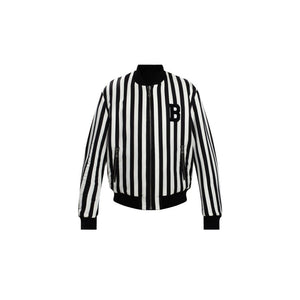 Unleash the embodiment of haute couture with Balmain’s reversible jacket, a sartorial masterpiece that offers versatility and style in equal measure. Exude confidence as you showcase the bold black and white striped pattern with the iconic applique logo or flip to flaunt a sleek, black silhouette with an imprinted logo adding a discreet yet powerful statement. This jacket, with its dual-slider zipper and multiplicity of pockets, isn’t just a garment; it’s a declaration of fashion-forward audacity.