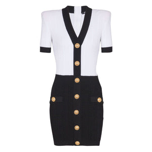 thigh-length V-necked knitted mini dress Size and Fit - This piece fits true to size. We recommend you get your regular size. Model is 1,75m / 5ft 8in wearing size 36 (FR)