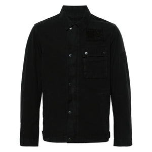 black cotton ripstop texture logo patch at the chest embroidered logo at the sleeve classic collar front press-stud fastening concealed front zip fastening press-stud fastening cuffs stud-fastening chest pocket two side slit pockets unlined adjustable side straps straight hem Workers cotton jacket Size and Fit - This piece fits true to size. We recommend you get your regular size. Model is 1,84m / 6ft 1in wearing size M