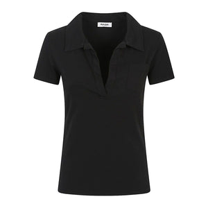 Black polo shirt, half sleeves, patch pocket on the chest, straight hem. Cotton polo shirt Size and Fit - This piece fits true to size. We recommend you get your regular size. Model is 1,75m / 5ft 8in wearing size 40 (IT)