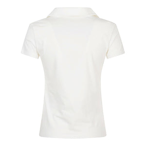 White polo shirt, half sleeves, patch pocket on the chest, straight hem. Cotton polo shirt Size and Fit - This piece fits true to size. We recommend you get your regular size. Model is 1,75m / 5ft 8in wearing size 40 (IT)