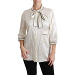 Dolce & Gabbana Beige 3/4 Sleeve Shirt Blouse Silk Top