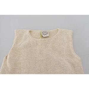PINK MEMORIES Beige Cotton Blend Sleeveless Round Neck Tank Top